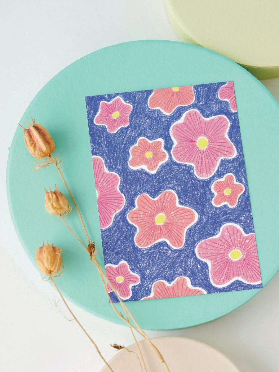 Brighten someone’s day with ‘Starflowers’ greeting card—a vibrant floral design in whimsical way crayons. A soft, botanical touch for birthdays, congratulations, or “just because”. Originally created using wax crayons and has therefore lots of lovely texture.